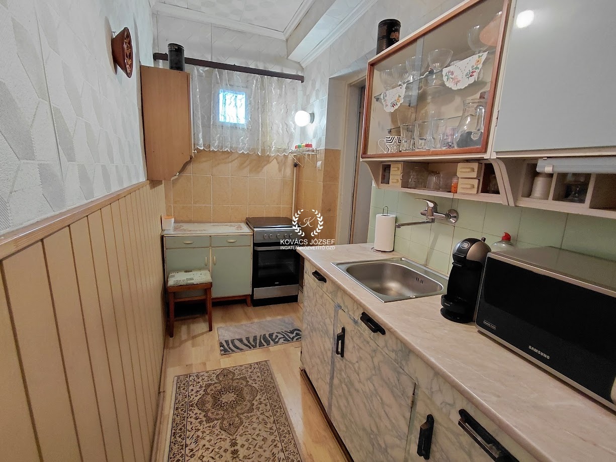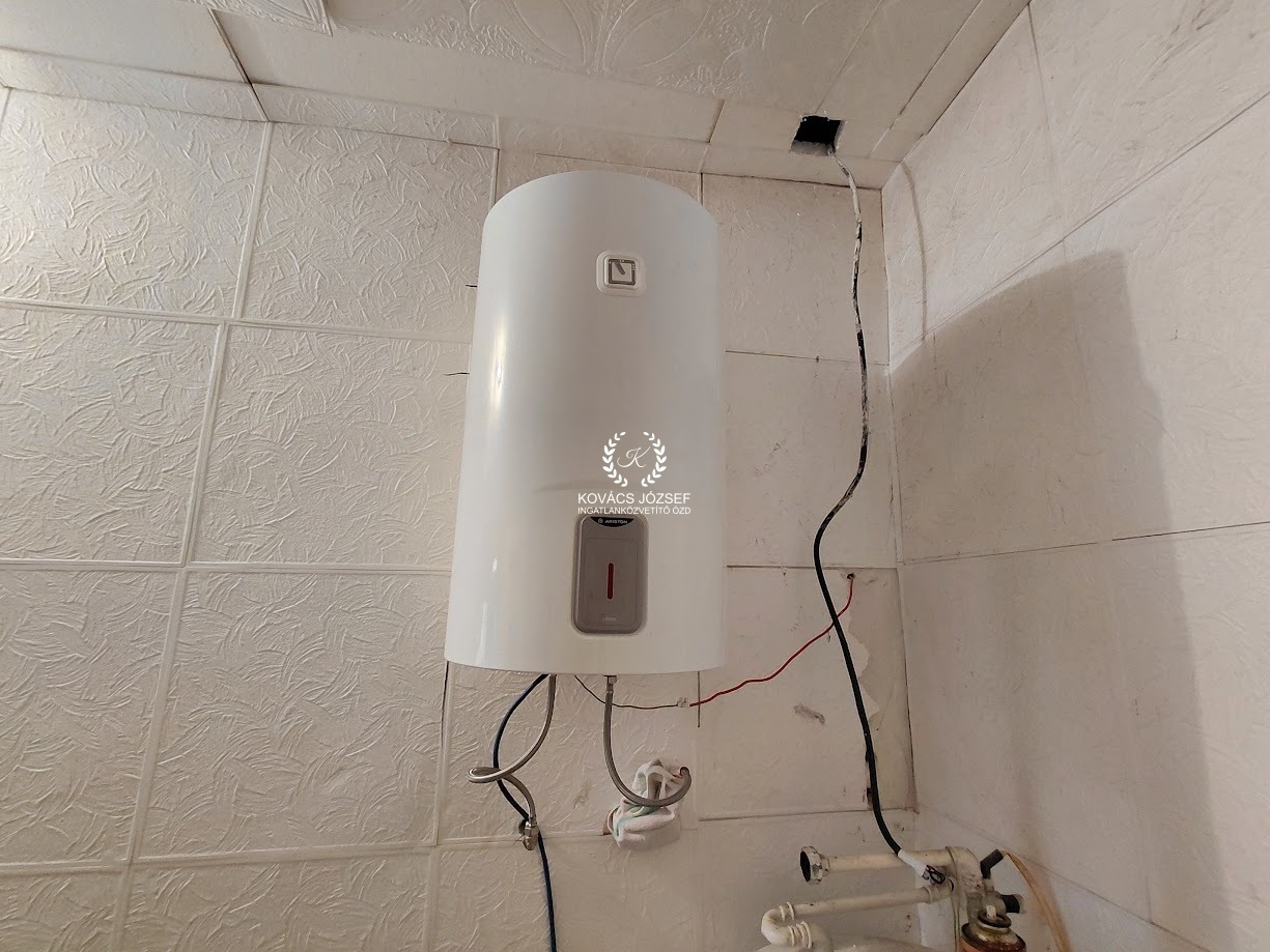 Minden közmű bekötve: víz, gáz, villany, csatorna. Központi fűtése radiátorokkal van megoldva, bár a kazán cserére szorul, a meleg vizet viszont megbízható, pár éves Ariston villanyboiler biztosítja.